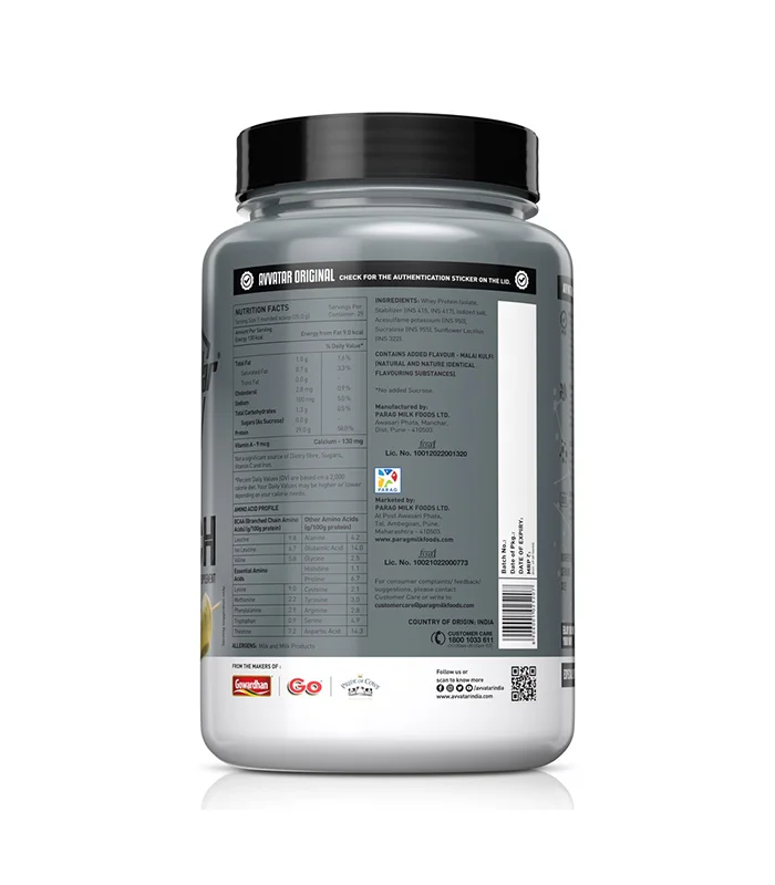 Avvatar Whey Protein is crafted with only the finest natural ingredients and without any artificial colours and fillers.