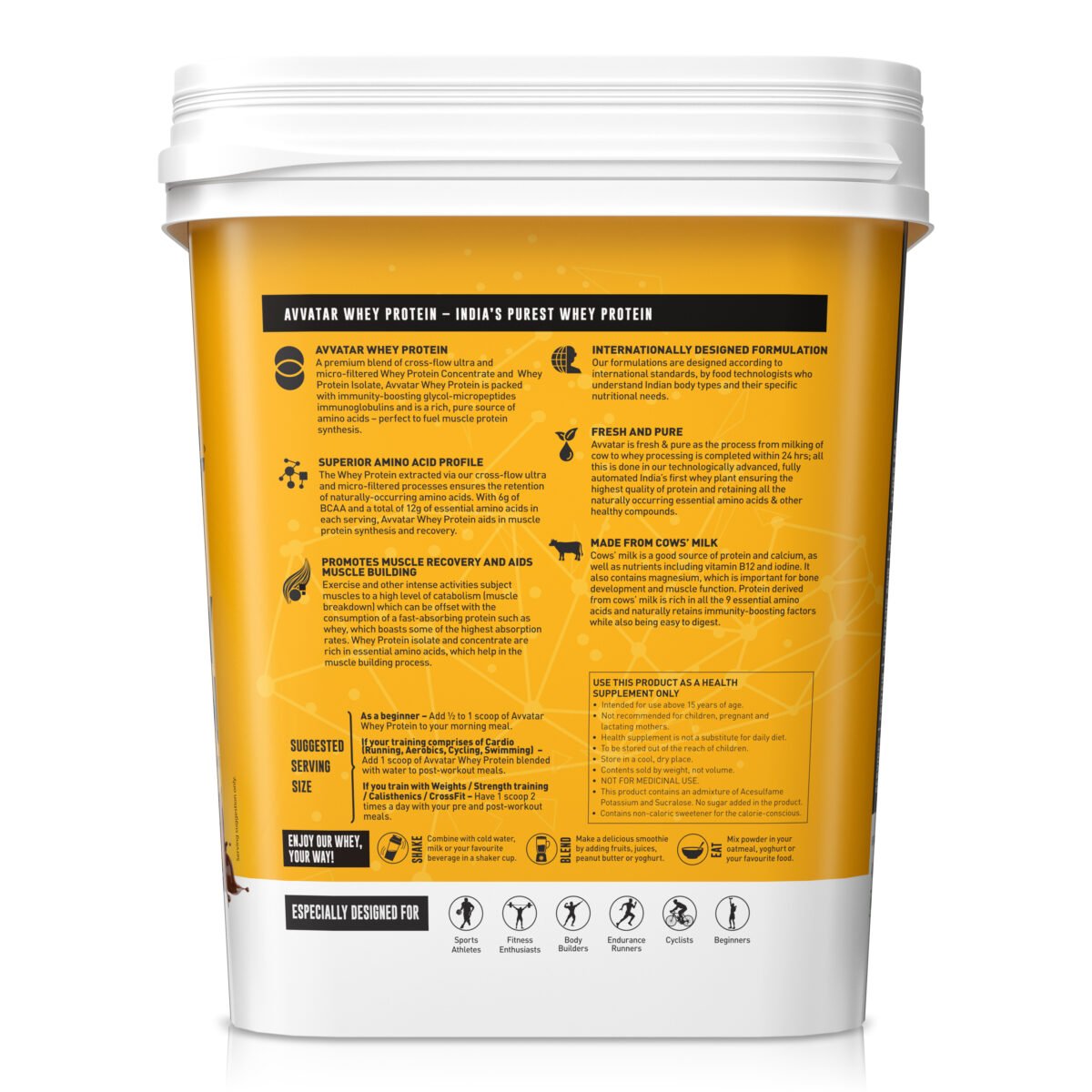 Avvatar Whey Protein is crafted with only the finest natural ingredients and without any artificial colours and fillers.